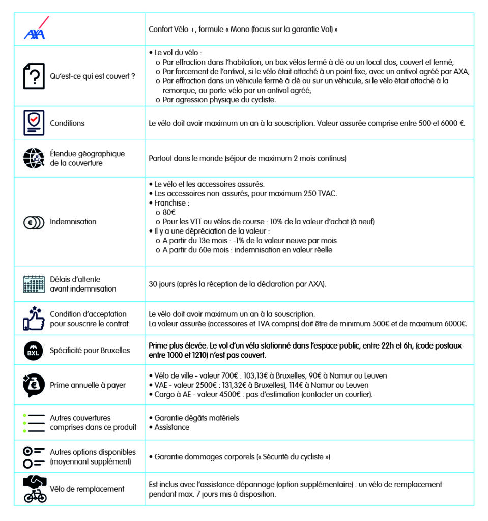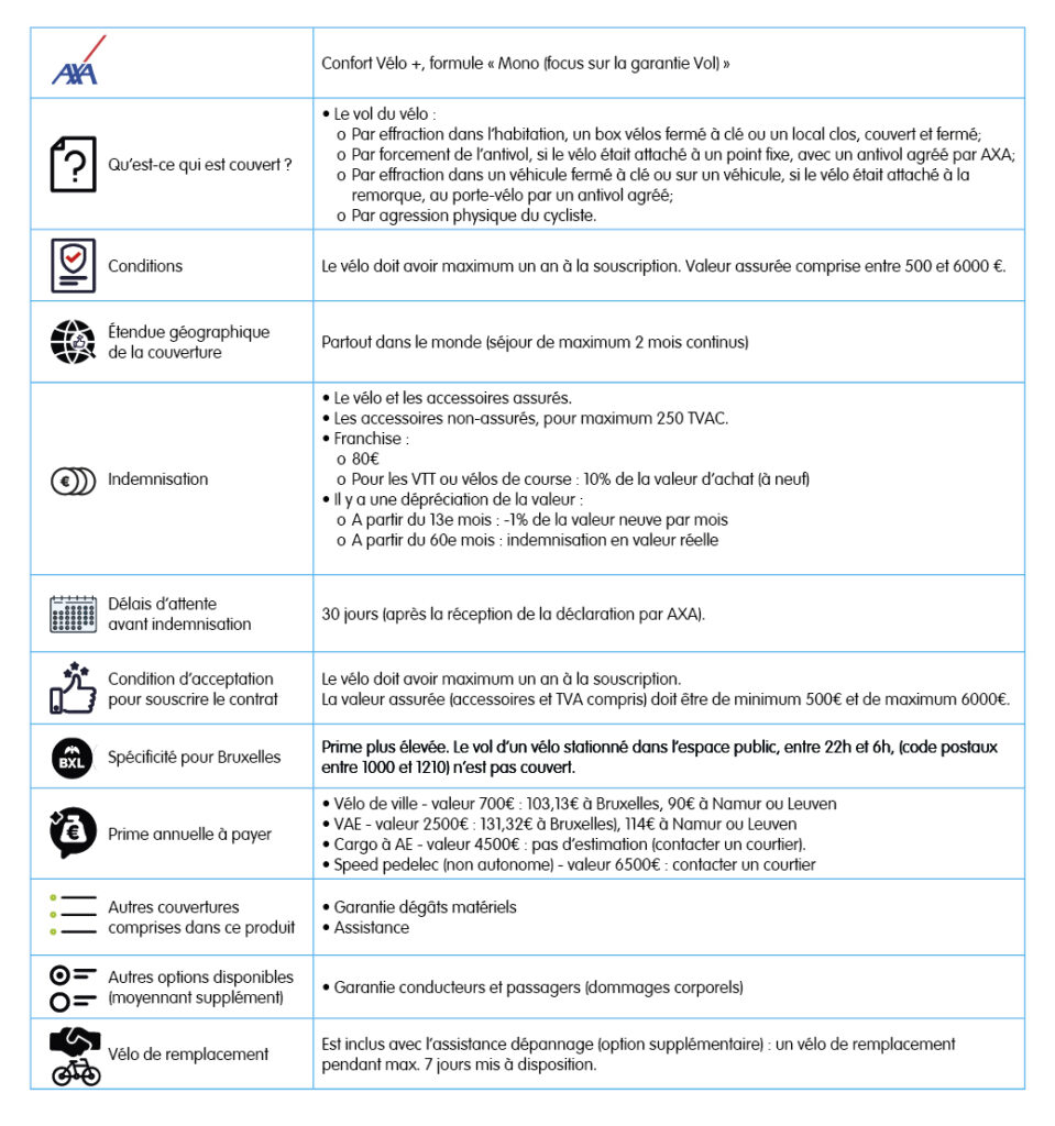 Pro Velo a comparé en avril 2023 les conditions des produits d’assurance suivants :