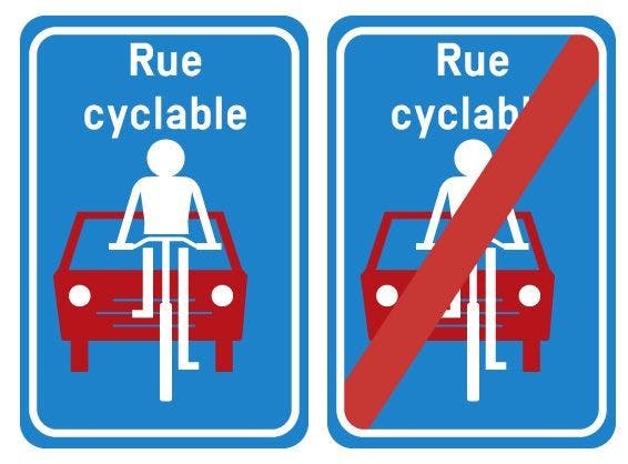 Les panneaux portent désormais la mention « zone cyclable » (et non plus « rue cyclable »). Une période de transition est prévue pour permettre aux gestionnaires de voirie d’adapter la signalisation sur le terrain.