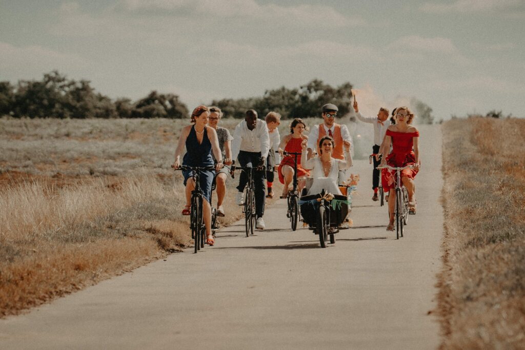 Bakfietsen en longtails zijn superhandige vervoersmiddelen voor alledaagse verplaatsingen, boodschappen, het vervoer van kinderen. Maar ook voor een trouwfeest! ✨