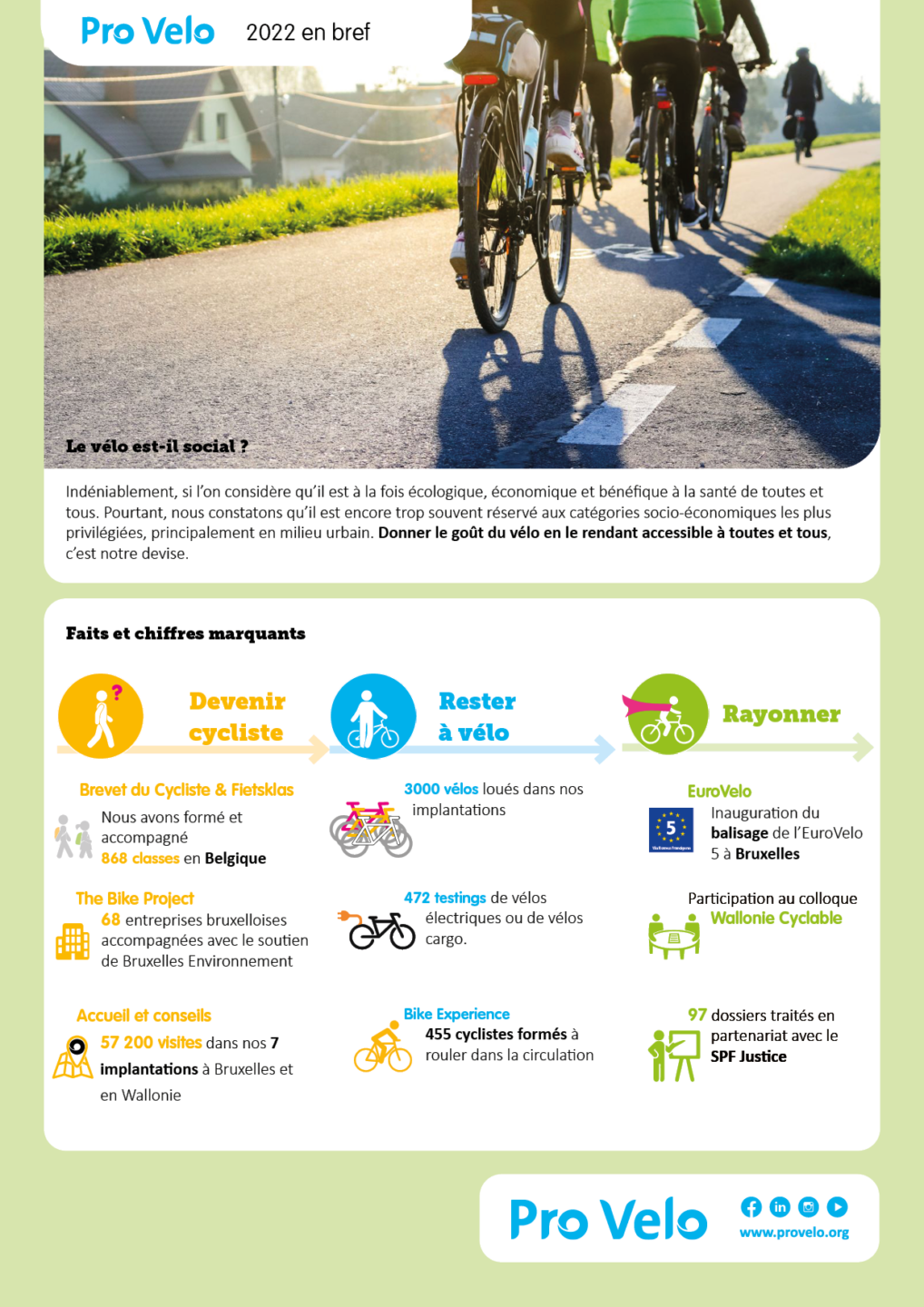 Notre rapport d’activités 2024 est en ligne. Au-delà des chiffres, il retrace une année de projets concrets, de trajectoires inspirantes et d’actions ancrées sur le terrain. Le vélo s’y révèle un véritable allié face aux défis climatiques, sociaux, sanitaires et économiques.