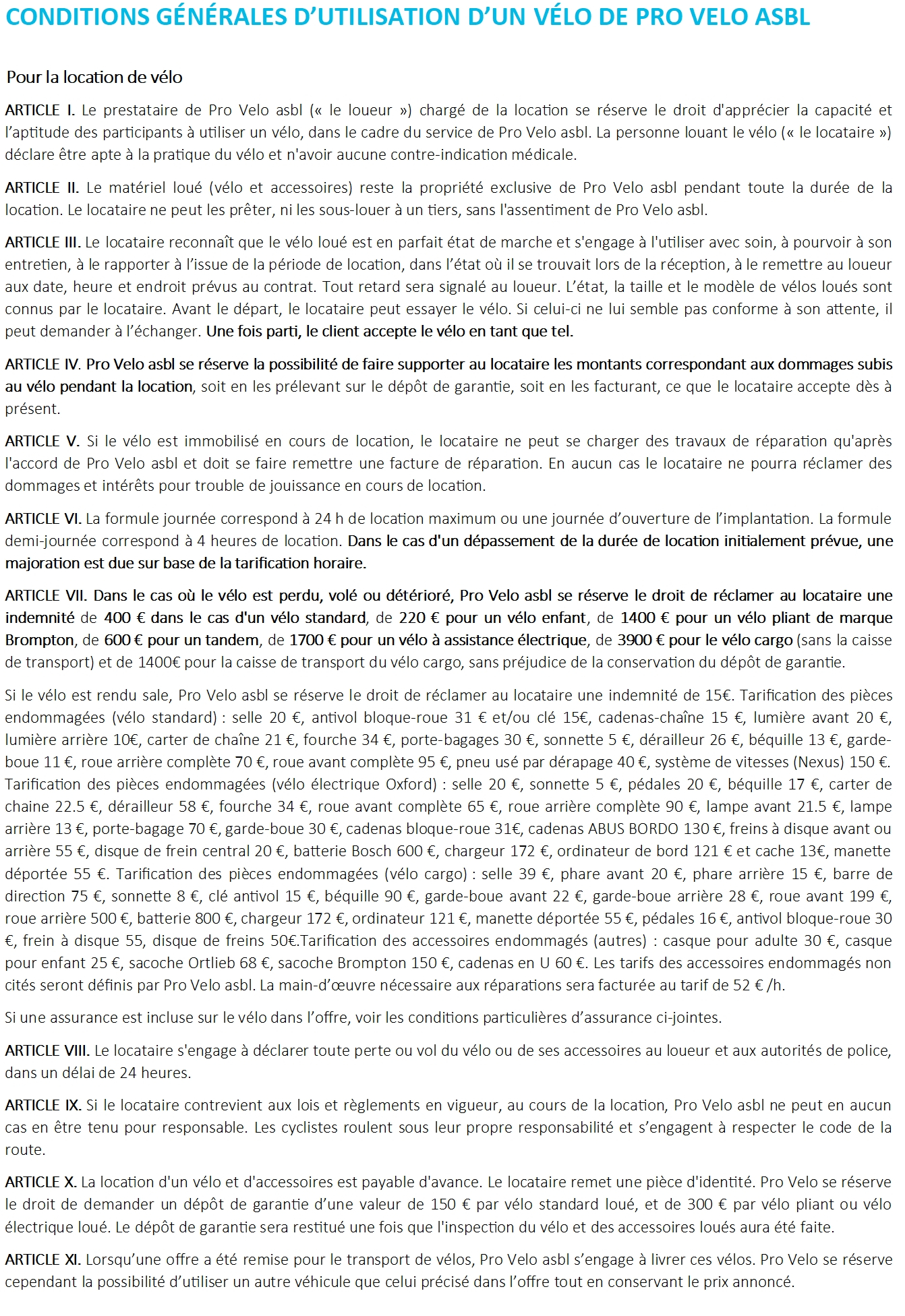 - Ce service est accessible aux personnes majeures. Attention : si, lors de la location, le vélo subit des dommages, le montant des réparations vous sera réclamé. De même, en cas de vol, nous nous réservons le droit de vous réclamer la somme de 350 €.